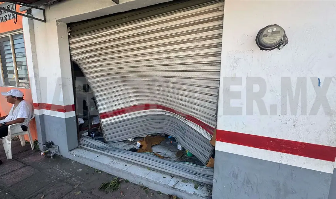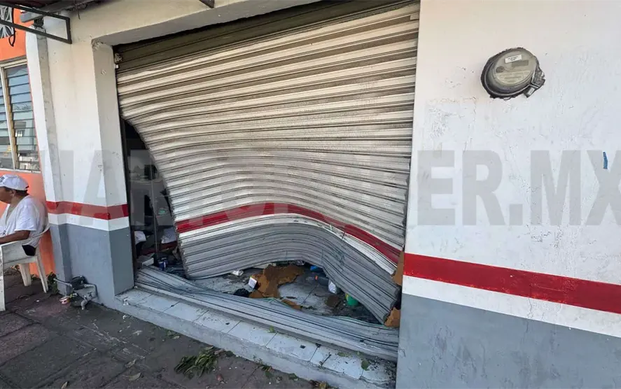 Un vehículo se estrelló contra el portón de un negocio luego de que el conductor perdiera el control del volante, presuntamente por una falla mecánica, y se saliera del camino, esto en el municipio de Tapachula.