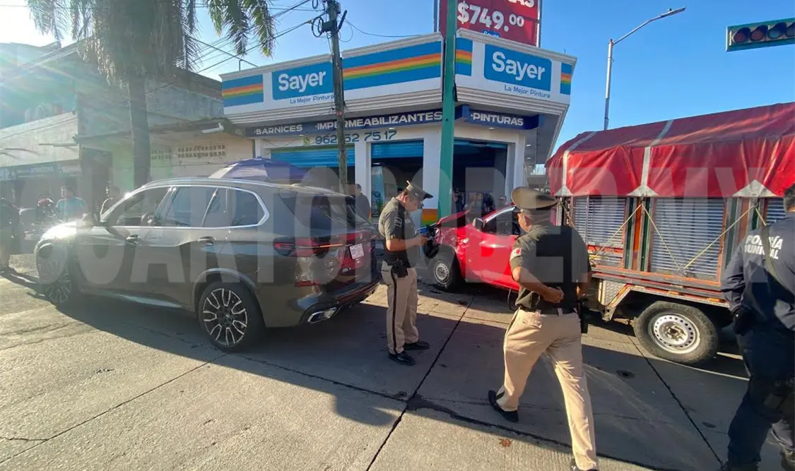 Una mujer lesionada y daños materiales de alta consideración dejó como saldo un fuerte choque, en una esquina del centro de Tapachula donde operan con normalidad los semáforos, por lo que uno de los conductores no respetó las señales.