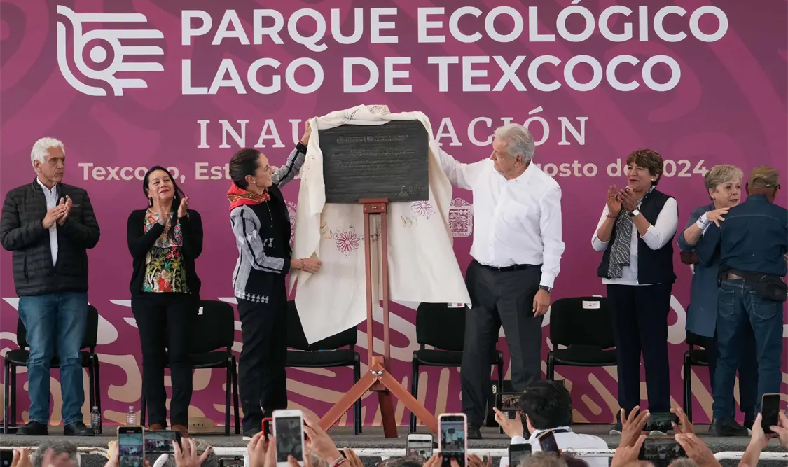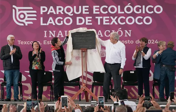 Texcoco.- La inauguración del parque ecológico Lago de Texcoco es la muestra de que el pueblo de México pasó del olvido y la represión de los gobiernos neoliberales a la esperanza y justicia social con la Cuarta Transformación, aseguró la presidenta electa, Claudia Sheinbaum Pardo, tras acompañar al presidente Andrés Manuel López Obrador en el corte de listón de esta emblemática obra.