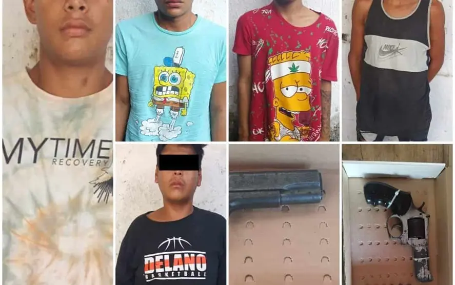 En el lugar conocido como “La Arrocera”, elementos de la Policía Estatal Preventiva y Policía Estatal Fronteriza detuvieron a Rodolfo “N”, Marco Antonio “N”, ambos de 20 años, así como a Jonathan Joaquín “N”, José Ángel “N”, de 18 años y Kevin Rolando “N” de 19 años, a quienes se les aseguró dos armas de fuego y 11 cartuchos útiles.