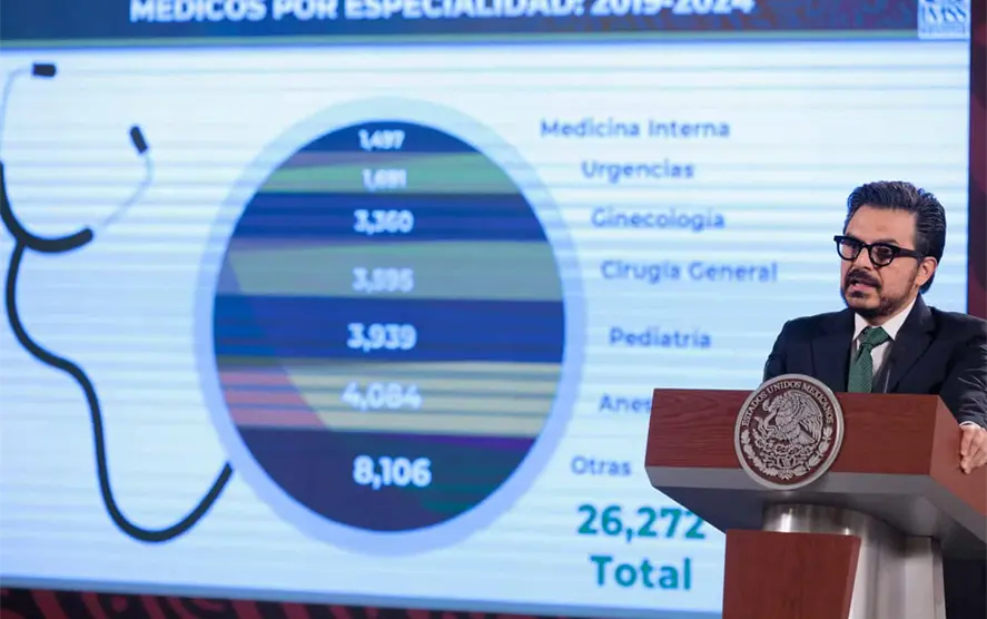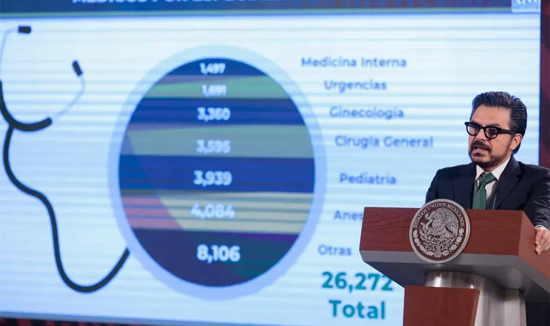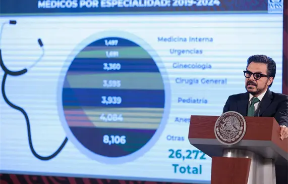 En la conferencia mañanera del presidente Andrés Manuel López Obrador de este martes en Palacio Nacional, donde se presenta el gabinete de Salud, Robledo destacó que hay mil 497 médicos internistas, mil 691 especialistas en urgencias, tres mil 360 ginecólogos, tres mil 593 cirugía general, tres mil 939 pediatras, cuatro mil 084 anestesiólogos, y el resto, ocho mil 106, con otras especialidades.