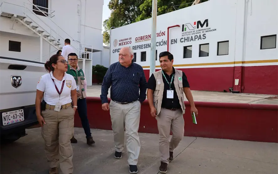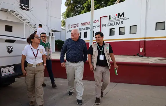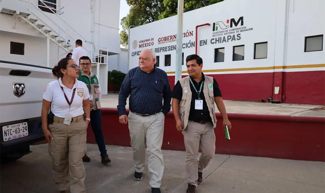 Previo al recorrido, Domínguez Zárate se reunió con la encargada de la Oficina de Representación del Instituto Nacional de Migración (INM) en la Frontera Sur, Farah Gertrudis Cerdio Moisés.