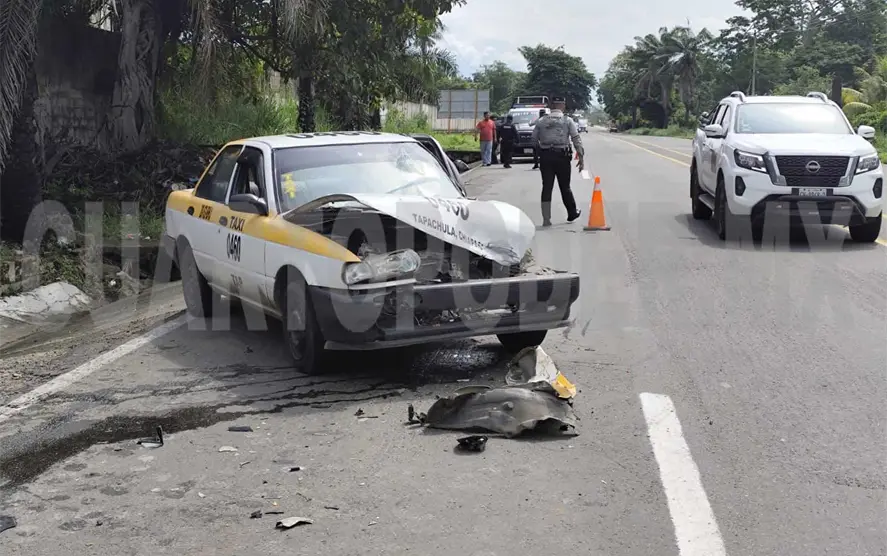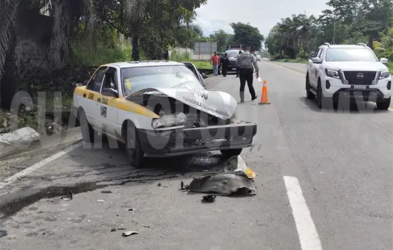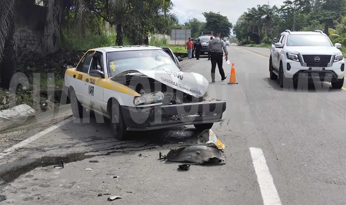 Un taxista resultó lesionado al impactar la unidad que conducía contra la parte trasera de un camión tipo torton, sobre la carretera Tapachula-Puerto Madero.