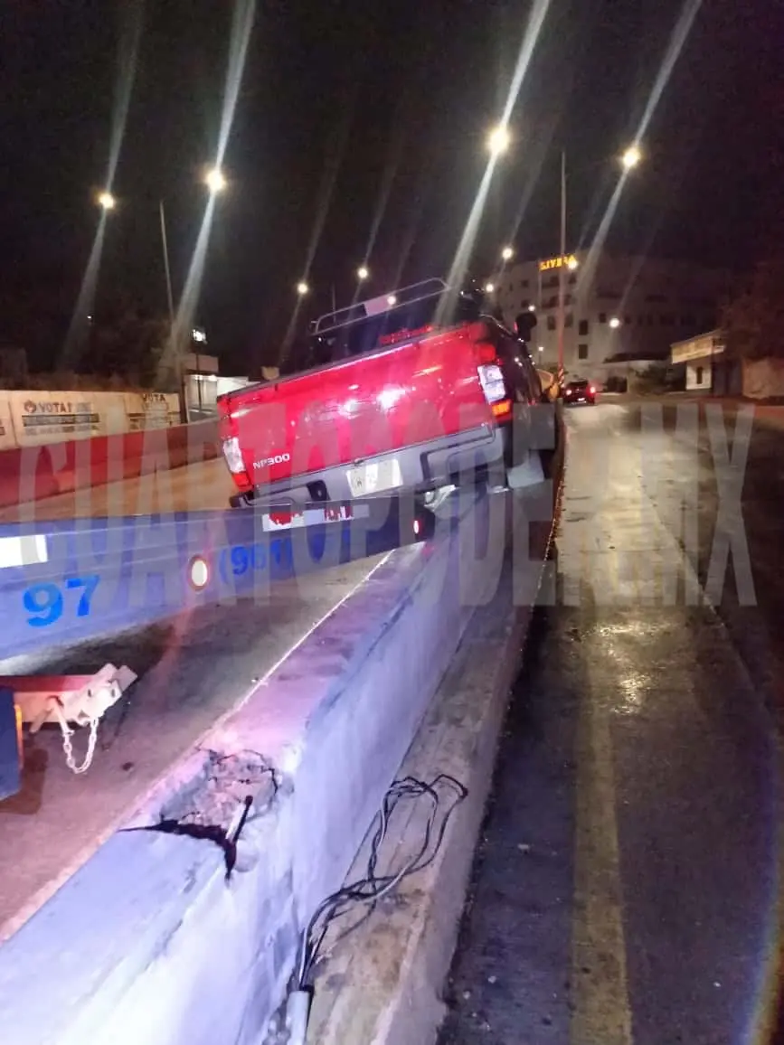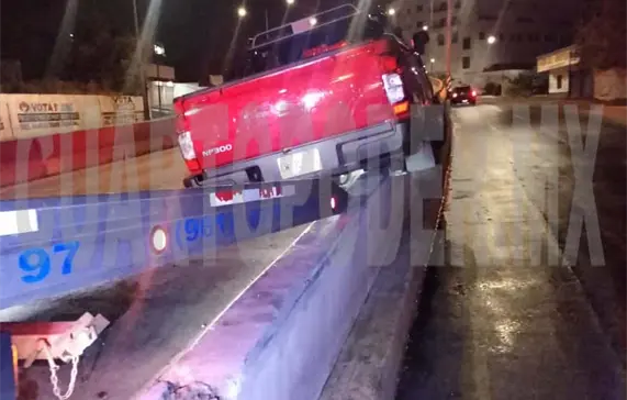 Una camioneta particular terminó sobre el muro de contención que divide ambos carriles del libramiento Sur, a la altura de la 11.ª Poniente, en la ciudad de Tuxtla Gutiérrez, la madrugada del martes.
