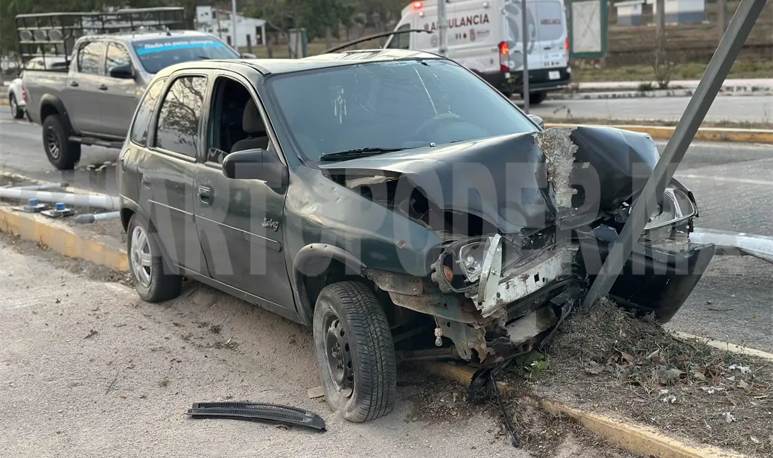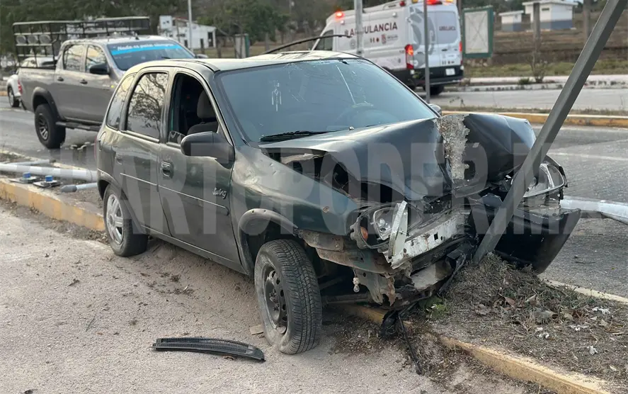 Un poste de alumbrado público derribado, un señalamiento de tránsito dañado y un vehículo sobre el camellón, fueron el saldo de un accidente carretero sucedido la tarde del domingo al oriente del municipio de Cintalapa. Presuntamente se debió a una distracción por parte del conductor.
