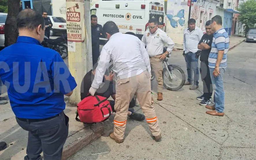 Una persona del sexo masculino lesionada y daños materiales de consideración, fueron el saldo de un accidente de tránsito registrado la mañana del viernes en el cruce de la 3.ª avenida Sur y 8.ª calle Oriente, en el tradicional barrio San Roque de Tuxtla Gutiérrez. El percance involucró a un vehículo particular y a una motocicleta.