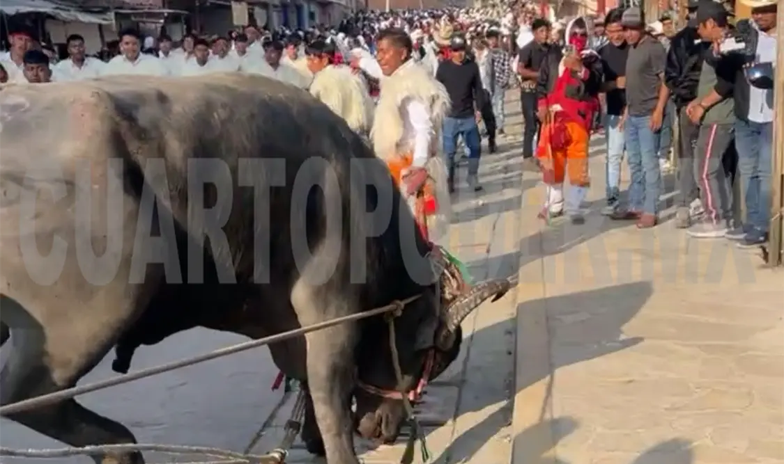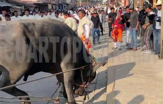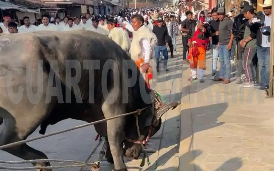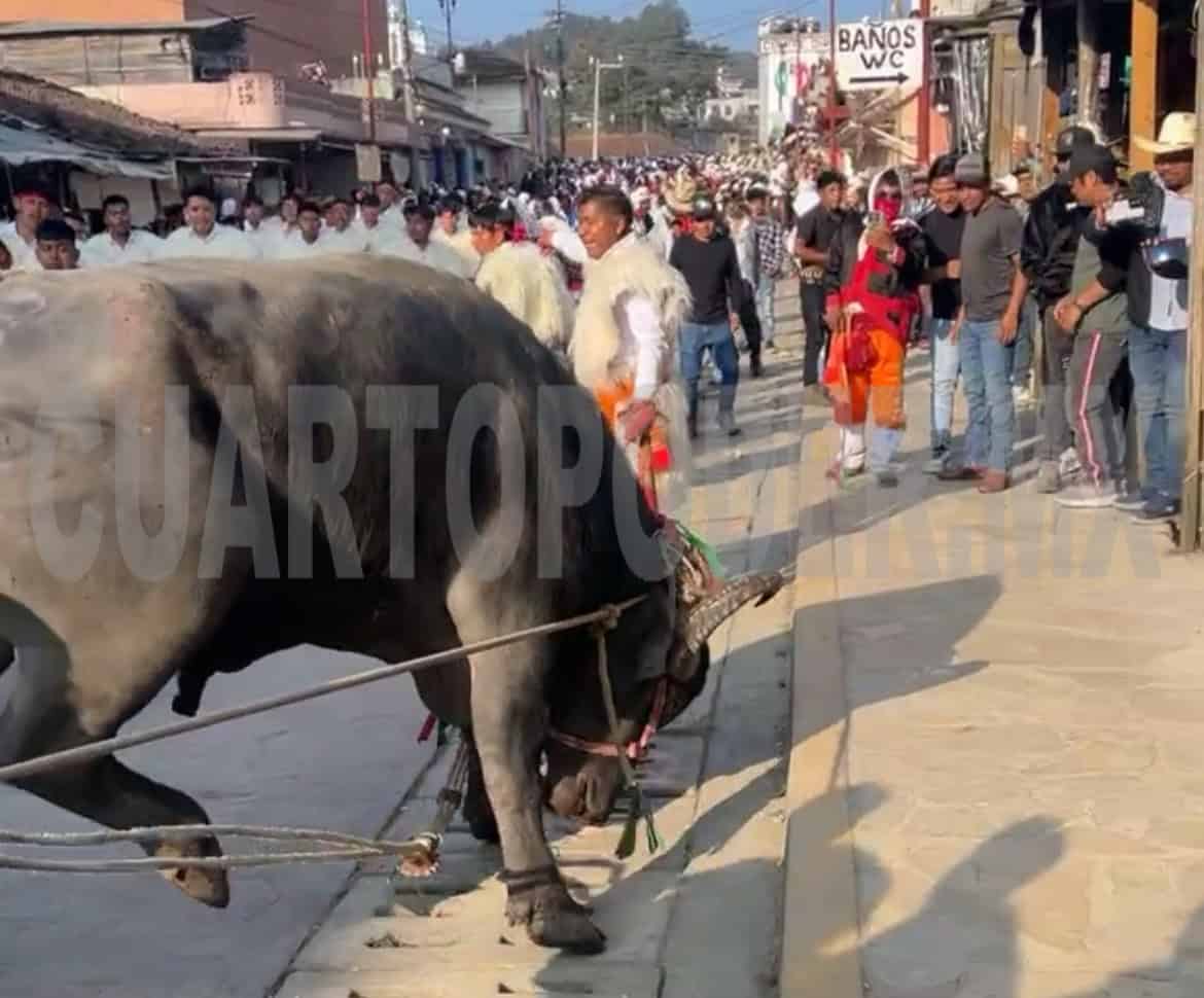 Gravemente lesionado fue como acabó un joven durante el Carnaval de San Juan Chamula, debido a que un toro lo pateó en el rostro mientras lo montaba.