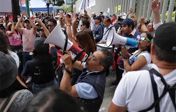En tanto, al interior del edificio ubicado sobre avenida Insurgentes Sur, en la Ciudad de México, consejeros y representantes de los trabajadores llevan reunidos más de cinco horas para determinar si continúa el paro de labores en rechazo a la reforma judicial.