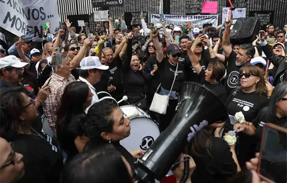 México.- Jueces y magistrados que están contra la reforma judicial y que declinaron al proceso de selección 2025, se manifiestan en el Senado de la República.
