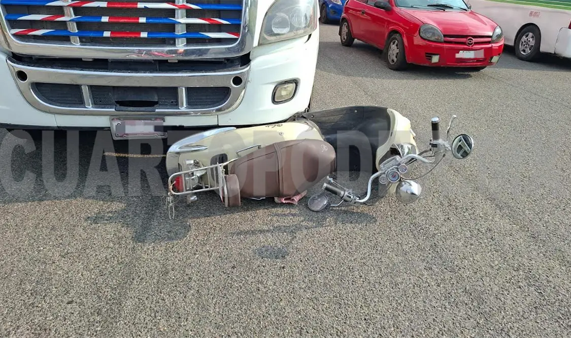 Con lesiones leves resultaron dos mujeres al ser impactada la motocicleta en que se desplazaban por un tráiler, sobre el libramiento Sur de Tapachula.
