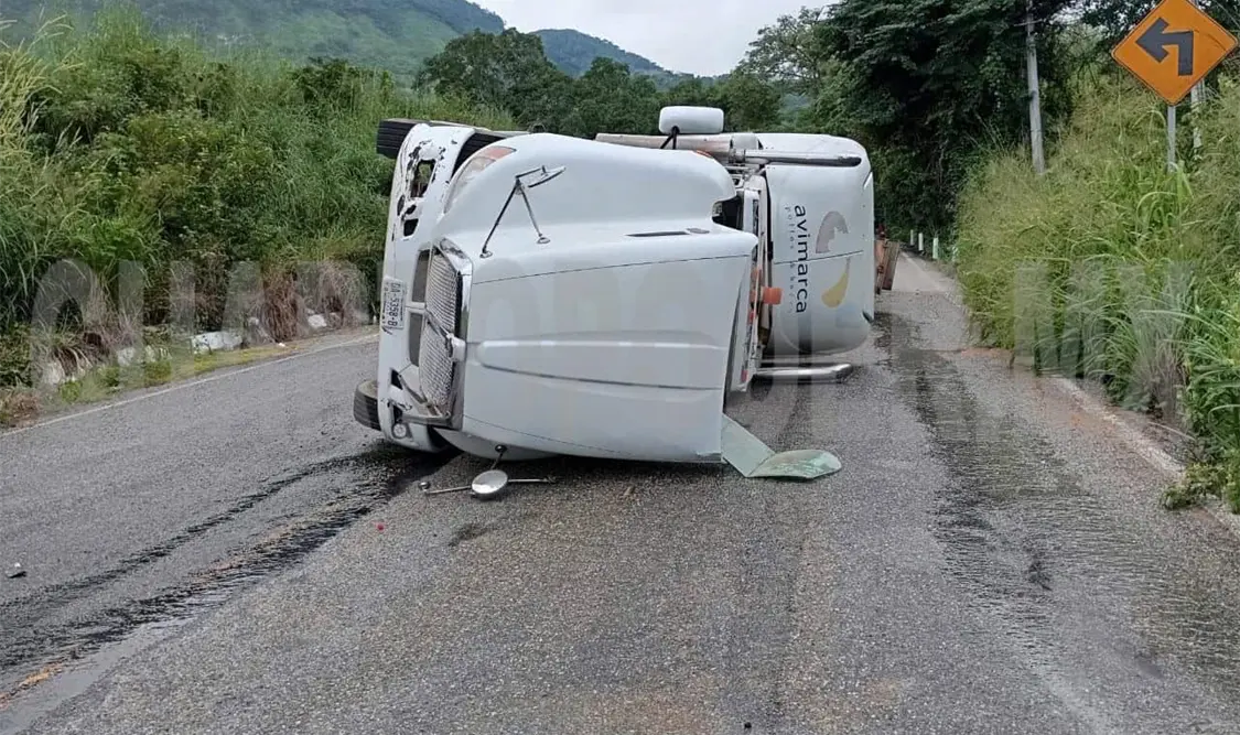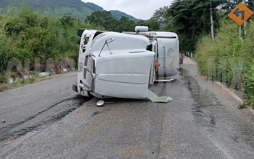 COITA. Un tractocamión terminó recostado y con las llantas al aire la mañana del martes en una de las vías pertenecientes al municipio de Ocozocoautla. Todo parece indicar que la falta de precaución y una mala maniobra fueron lo que provocaron el percance.