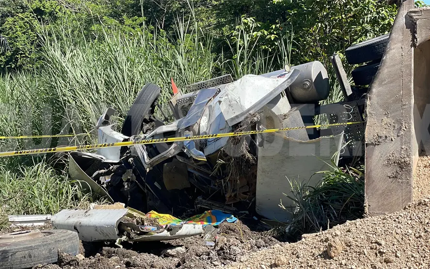 Un fatal percance ocurrió en el tramo conocido como las curvas de El Chimborazo, sobre la carretera federal Palenque-Ocosingo, cuando un tractocamión con góndola cargada de material pétreo perdió el control en pleno descenso y acabó volcado fuera de la cinta asfáltica.
