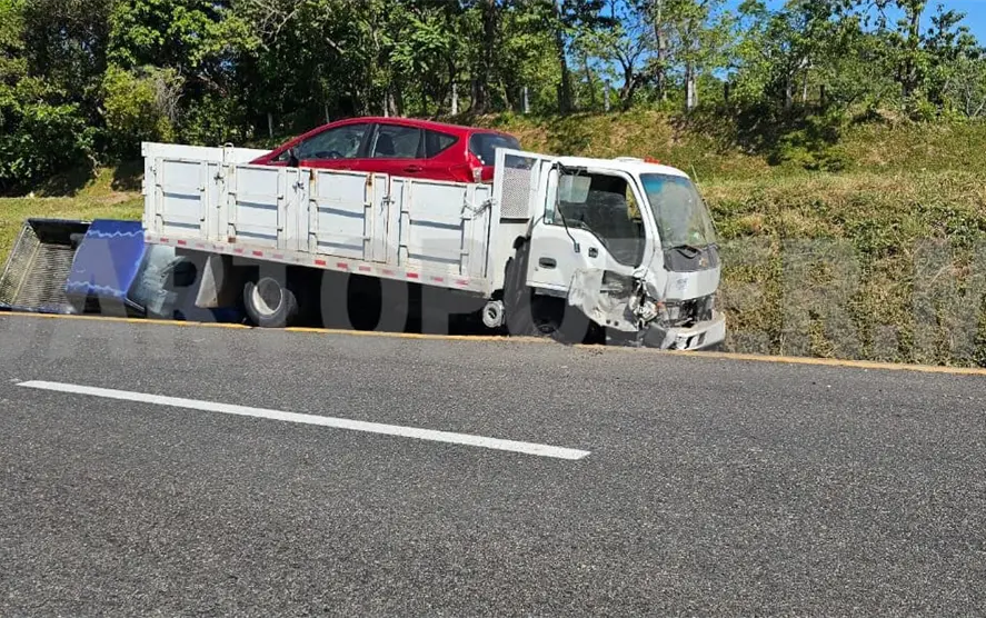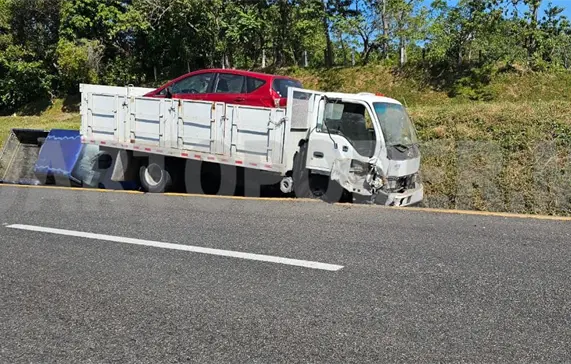 Un vehículo transmigrante, procedente de Estados Unidos con destino a Guatemala, salió de la carretera en el tramo de la comunidad Valdivia a Mapastepec.