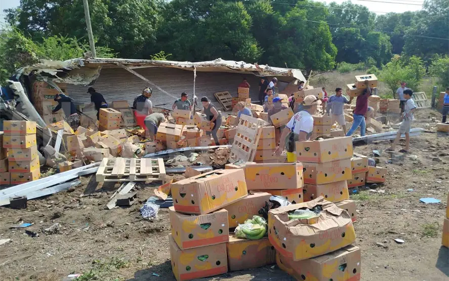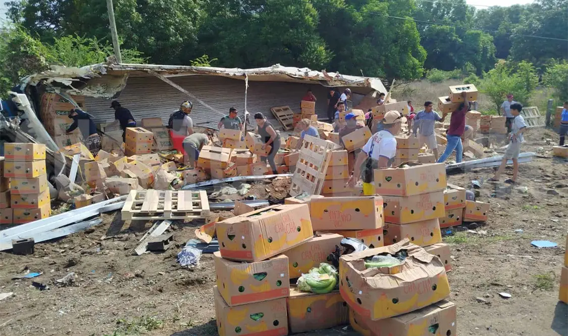 La mañana de ayer, en Tonalá, el chofer de un pesado vehículo perdió el control y volcó aparatosamente, perdiendo la mercancía que fue rapiñada por los transeúntes que llegaron al lugar para aprovechar la desgracia ajena.