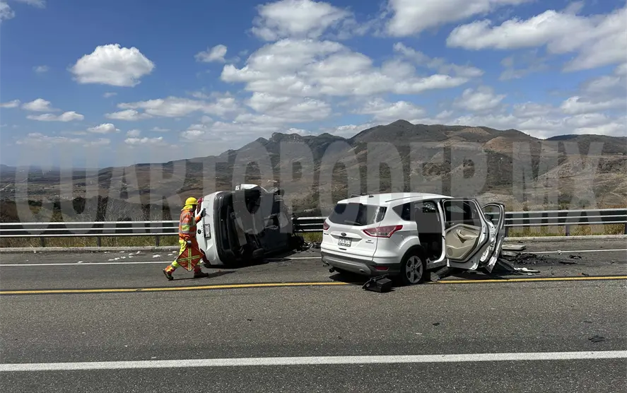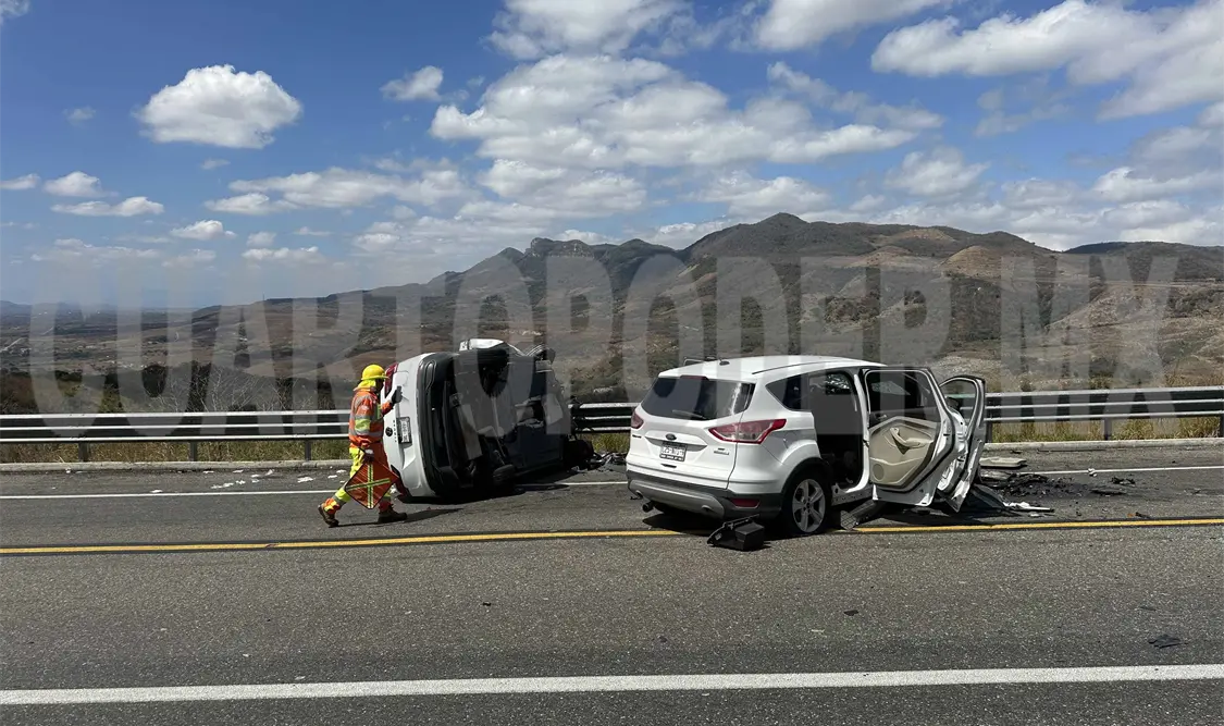 Cuatro personas lesionadas, dos vehículos severamente dañados y un camino congestionado, fue el saldo de un aparatoso accidente la mañana del domingo en el tramo Jiquipilas-Ocozocoautla vía pista.