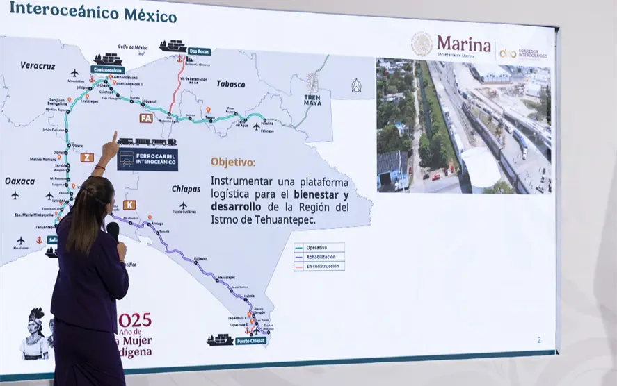México.- El Gobierno de México, a través de la Secretaría de Marina, informó que la Línea K del Tren Interoceánico tiene un avance general del 87.68 por ciento y concluirá en junio de 2026; mientras que el tramo Roberto Ayala-Dos Bocas de la Línea FA presenta un avance del 44.28 por ciento en la liberación del derecho de vía, además de que se construye el Tren Suburbano "El Tehuanito", que entrará en operaciones en diciembre de este año.