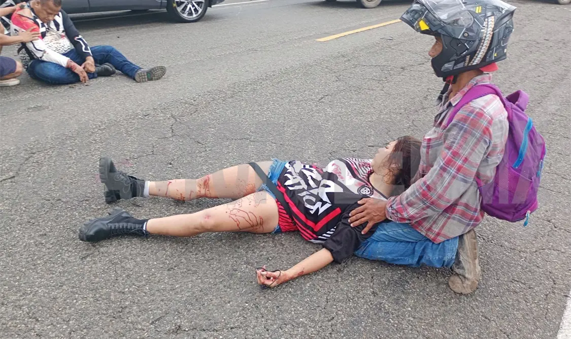 TUXTLA CHICO. Tres personas lesionadas y daños materiales de consideración dejó como saldo el choque de dos motocicletas en el tramo carretero Tapachula-Ciudad Hidalgo. Fue a la altura de la parada conocida como El Chincuyo, en donde ocurrió el percance cuando presuntamente una de las unidades involucradas al intentar rebasar se estampó de frente contra otra motocicleta.