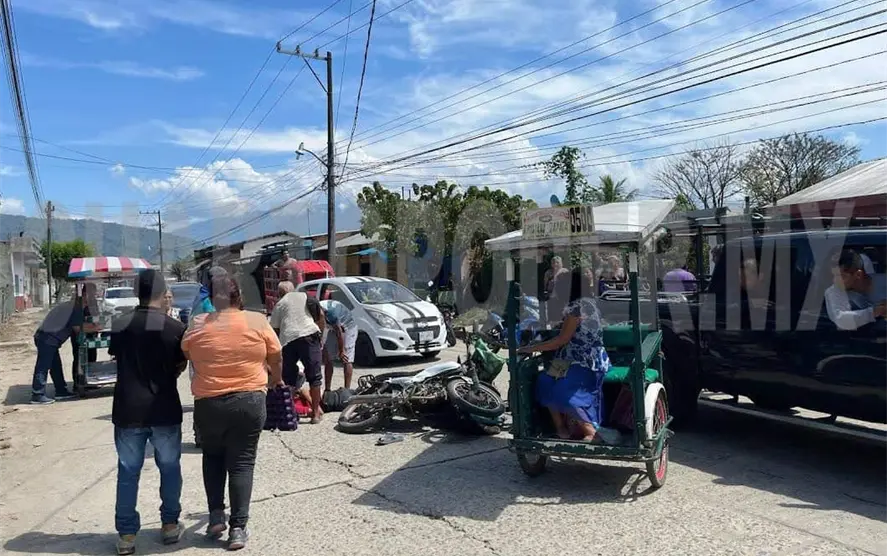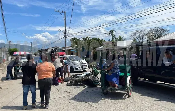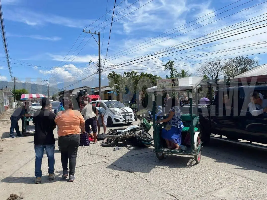 Tres personas resultaron lesionadas durante un choque de motocicletas sobre la avenida Abasolo Sur, a la entrada de la colonia Huixtlán en el municipio de Huixtla.