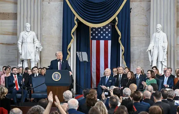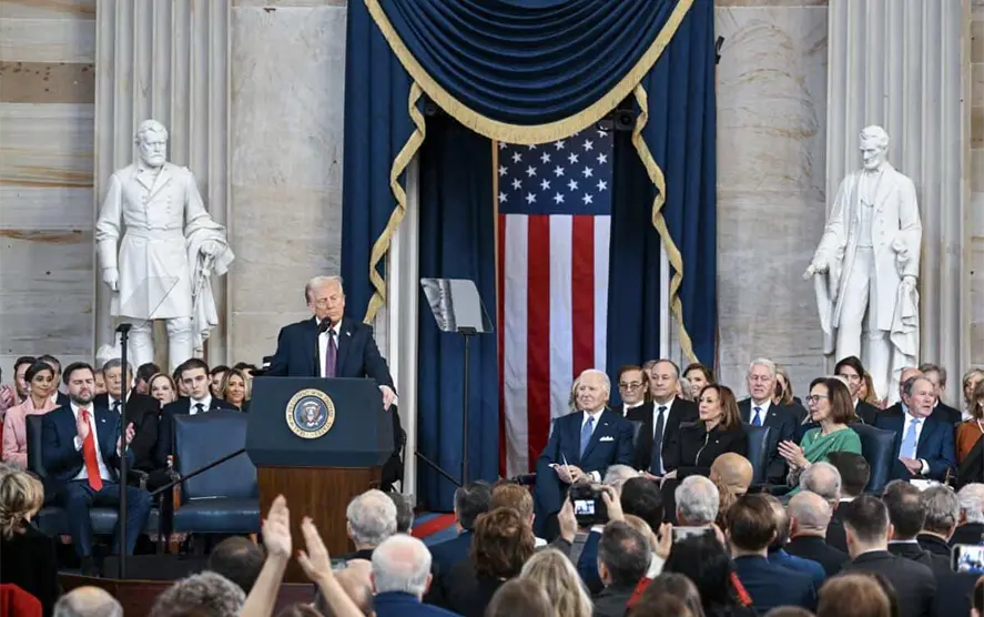 Con su toma de protesta, Trump se convirtió en el primer presidente de Estados Unidos en tener un segundo mandato con un periodo intermedio y en el primer delincuente convicto en llegar a la Casa Blanca.