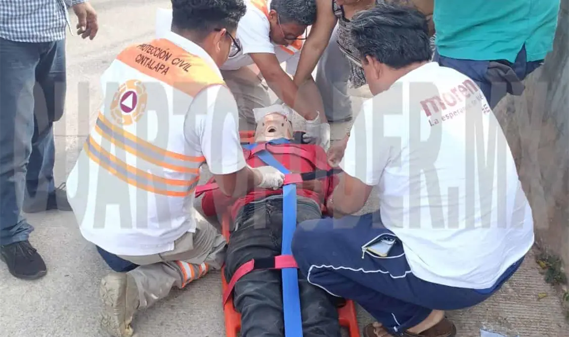 Un motorrepartidor y un vehículo de reciente modelo colisionaron en la intersección de calles en uno de los barrios del municipio de Cintalapa. Hubo daños materiales de consideración y una persona lesionada que tuvo que ser hospitalizada.
