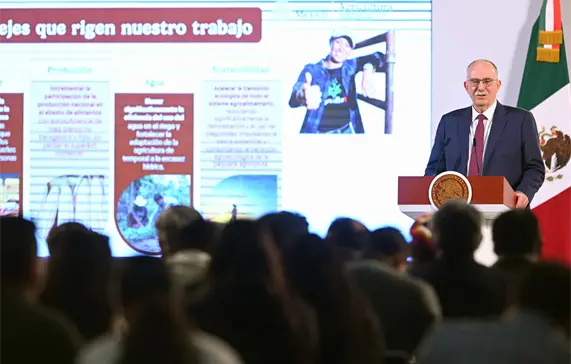 En la conferencia mañanera de Sheinbaum Pardo de este martes en Palacio Nacional, Berdegué mencionó que un aspecto central del gobierno es garantizar precios justos por el maíz blanco no transgénico a los productores.