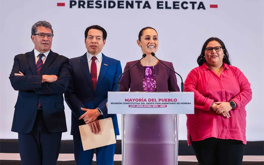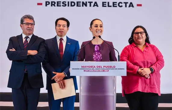 México.- México está viviendo un momento histórico con la continuidad de la Cuarta Transformación y por ello, las diputadas y diputados del movimiento, así como el Poder Ejecutivo, estarán a la altura de las circunstancias desde el Poder Ejecutivo y Legislativo, aseguró la presidenta electa de la República, Claudia Sheinbaum Pardo, tras reunirse con el próximo grupo parlamentario de Morena para la LXVI Legislatura 2024-2027.