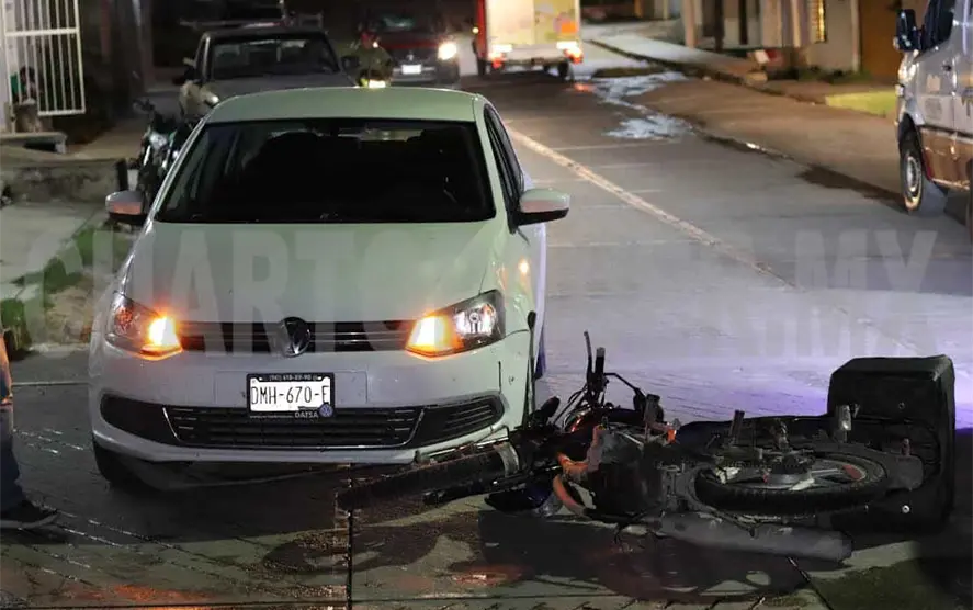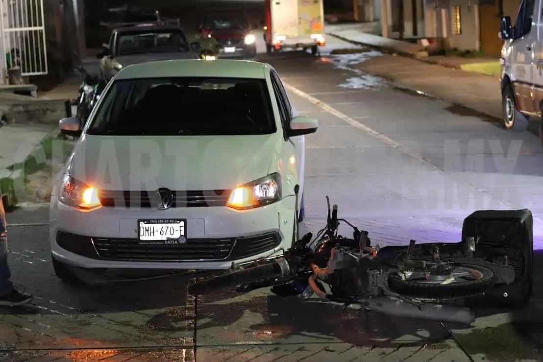 Un automóvil y una motocicleta protagonizaron un accidente la noche del miércoles al sur poniente de uno de los barrios pertenecientes al municipio de Cintalapa.