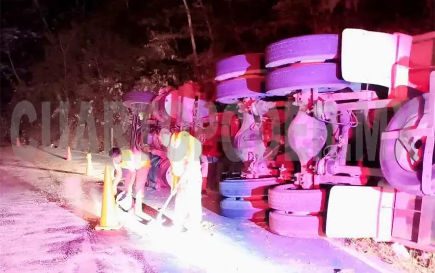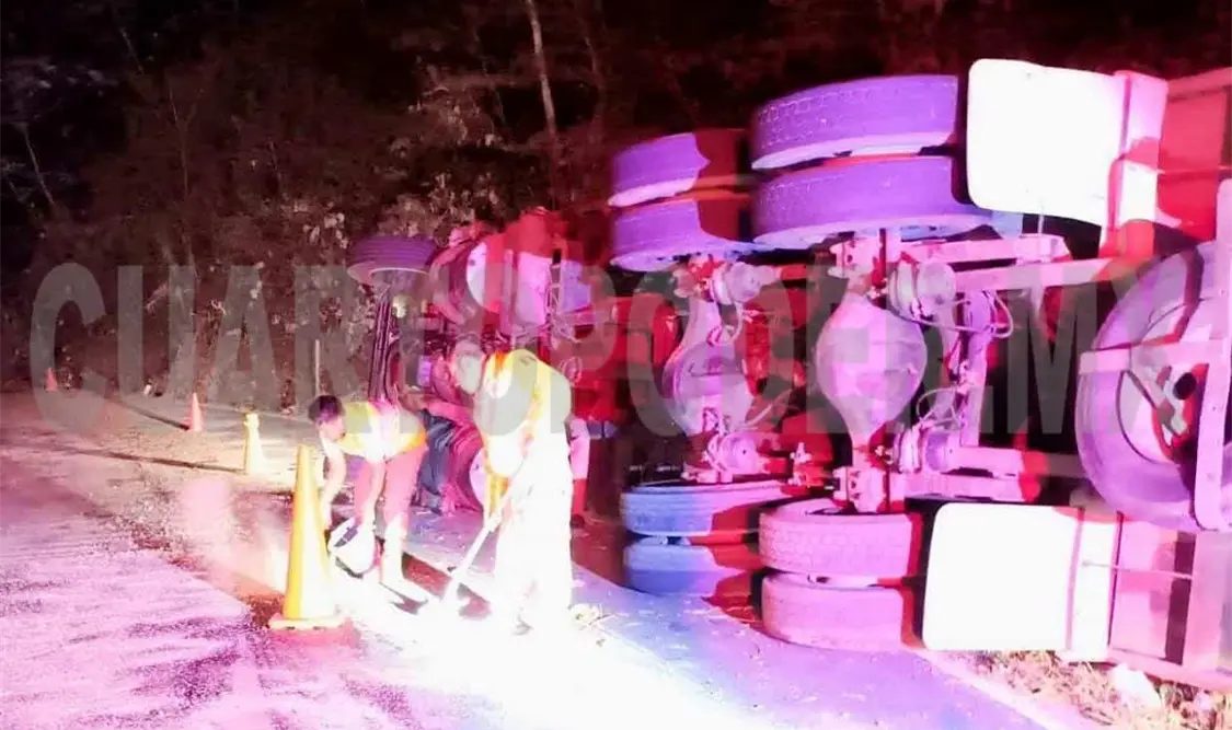 Por varias horas fue cerrada la carretera entre Huixtla y Motozintla, la noche del viernes y madrugada del sábado, debido a la volcadura de un camión de carga que provocó que el combustible se regara sobre la cinta asfáltica.