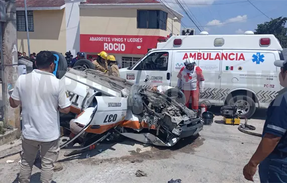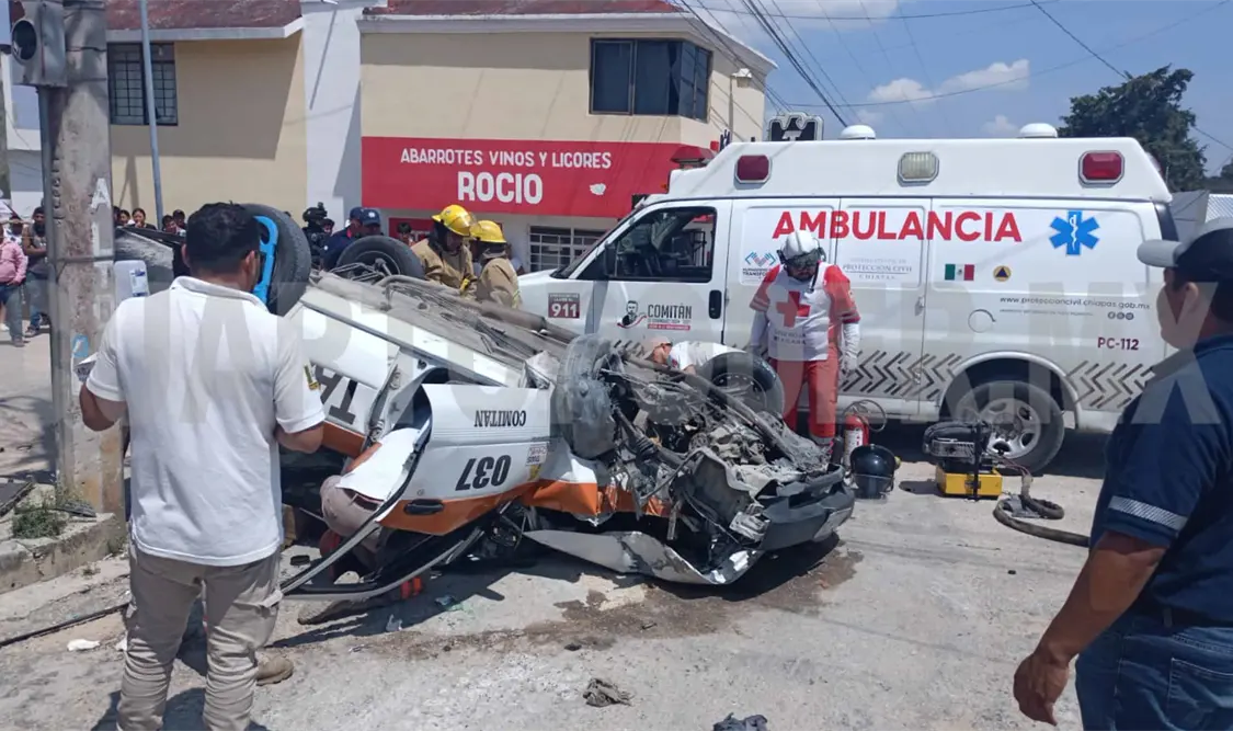 Tres personas lesionadas y pérdidas materiales por varios miles de pesos dejó la volcadura de un vehículo del servicio público en modalidad de taxi, durante el mediodía del sábado en Comitán, lo que movilizó a los cuerpos de emergencia.