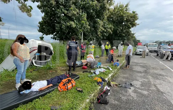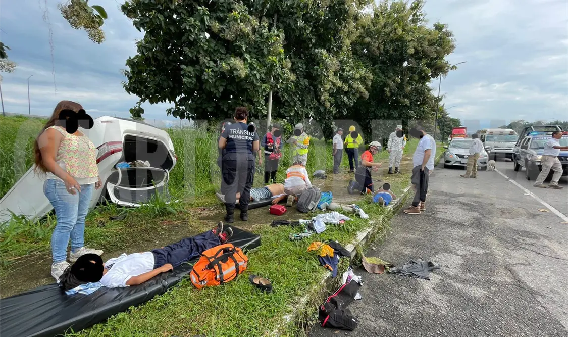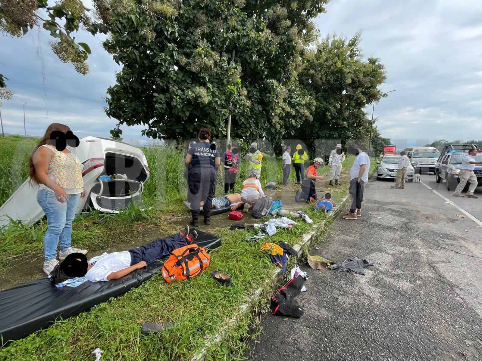 Un saldo de tres personas lesionadas, entre ellos un menor de edad, y daños materiales de alta consideración, fueron el saldo de una aparatosa volcadura en el tramo carretero Tuxtla Chico-Tapachula, lo que movilizó a los cuerpos de emergencia y de seguridad.