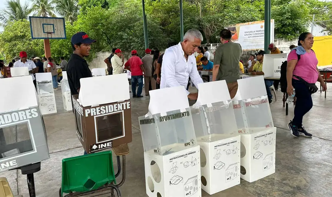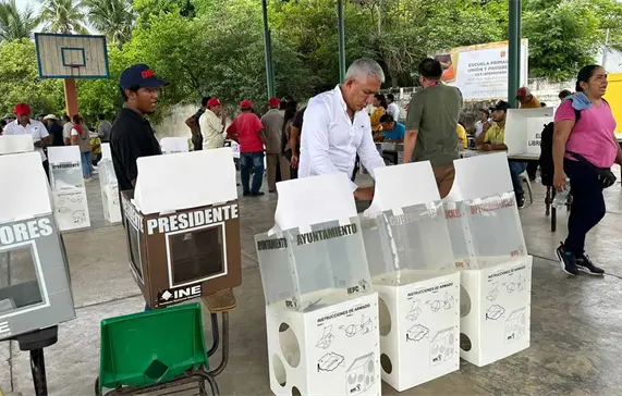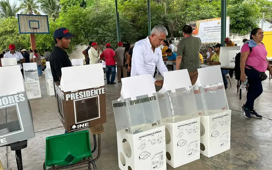 Cumpliendo con su deber cívico, el fiscal general del Estado, Olaf Gómez Hernández ejerció su derecho al voto en la casilla 1516 instalada en la escuela primaria Unión y Progreso del ejido Cabeza de Toro, municipio Tonalá.