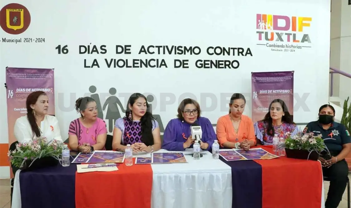 Por otro lado, con la finalidad de fortalecer acciones encaminadas a la atención de la violencia de género en la capital del estado, en rueda de prensa la Secretaría para la Igualdad de las Mujeres y el Ayuntamiento de Tuxtla Gutiérrez, en coordinación con diferentes instancias como el Sistema DIF municipal, la Secretaría de Salud Municipal, Secretaría de Seguridad Pública y Tránsito Municipal, la Secretaría de Seguridad y Protección Ciudadana del Estado, empresas e instituciones privadas, invitan a los 16 días de activismo contra la violencia de género a realizarse en Tuxtla.