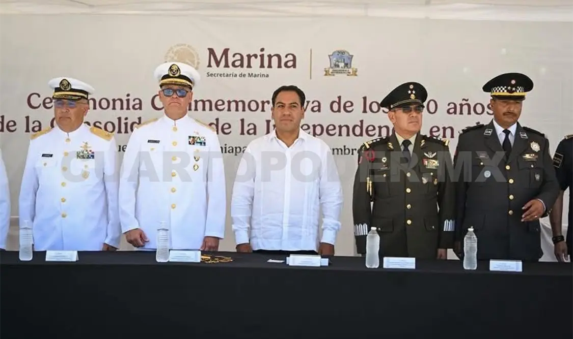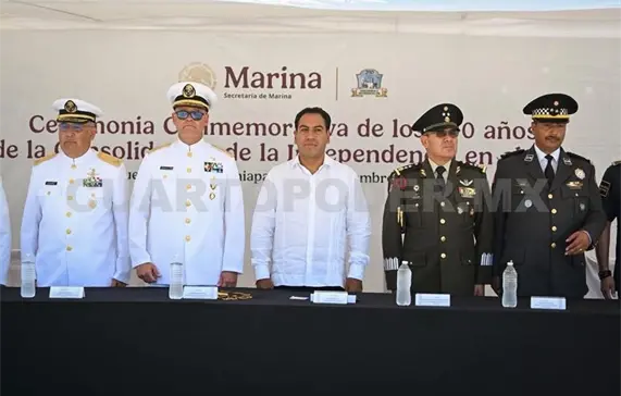 El gobernador Eduardo Ramírez Aguilar asistió a la Ceremonia Conmemorativa de los 200 años de la Consolidación de la Independencia en el Mar, realizada en Puerto Chiapas, en el municipio de Tapachula.