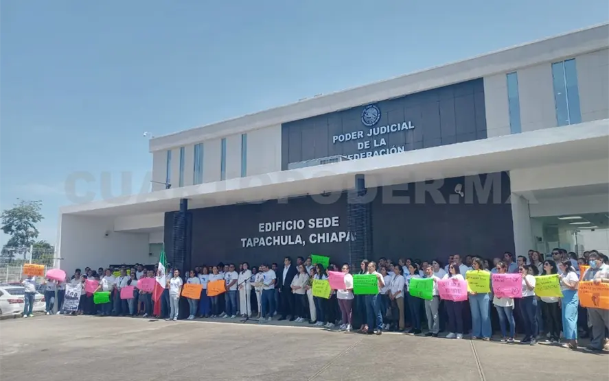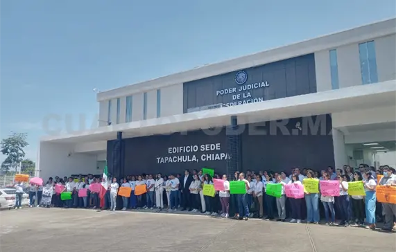 En las instalaciones de los juzgados federales, la titular del Juzgado Cuarto en Tapachula, Karina Villeda García, hizo un llamado a la unidad de los estudiosos del derecho de todo el país para impedir dicha reforma.