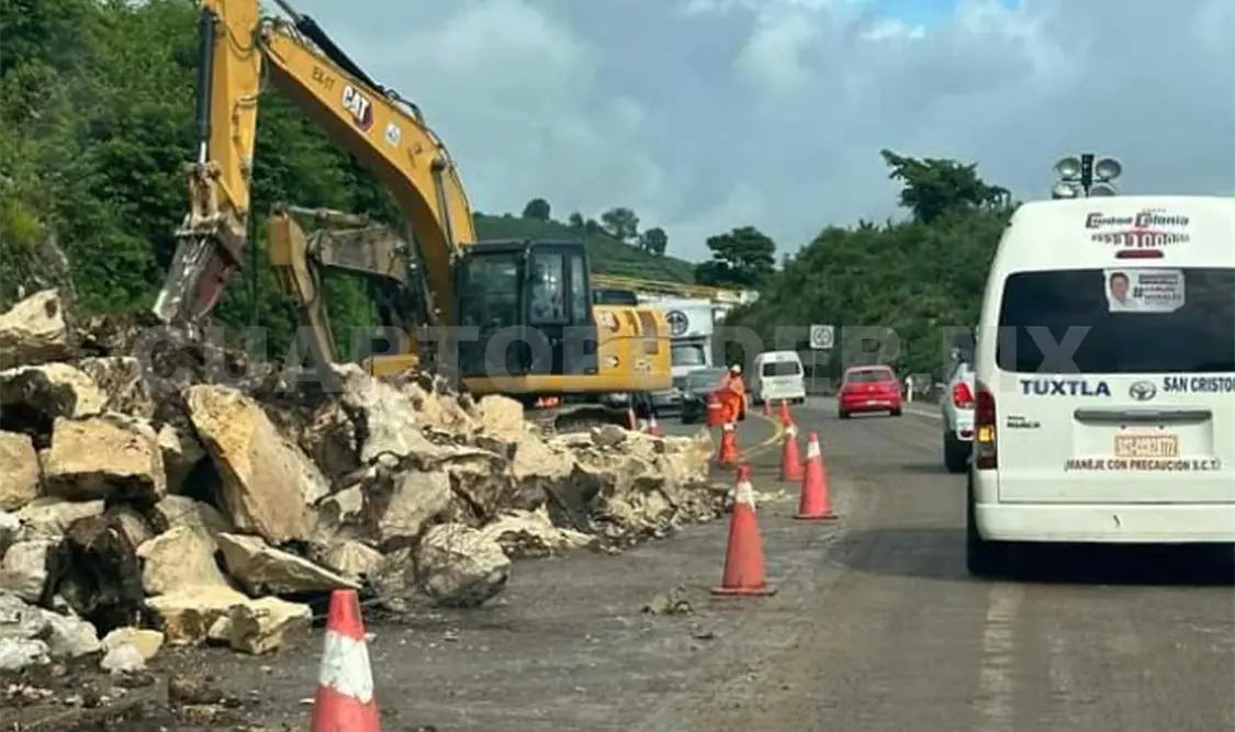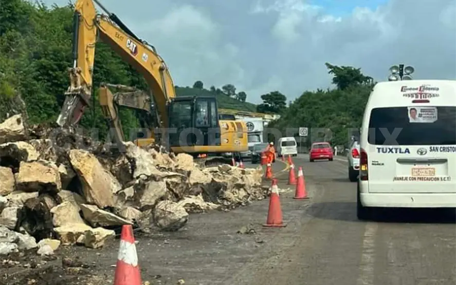 A 24 horas de registrarse el derrumbe en la carretera de cuota San Cristóbal de Las Casas-Tuxtla Gutiérrez, a la altura del kilómetro 23, la circulación volvió a una relativa normalidad.