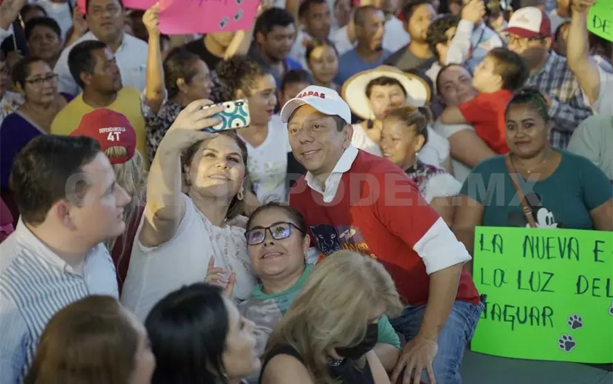 “Acompañamos a nuestro precandidato único a la gubernatura de Chiapas, Eduardo Ramírez Aguilar, en su visita al municipio de Pijijiapan; el pueblo está convencido de que estamos en la ruta correcta del movimiento transformador, que privilegia a los que menos tienen, a través de políticas públicas encaminadas a garantizar su bienestar y combatir la corrupción”, comentó.