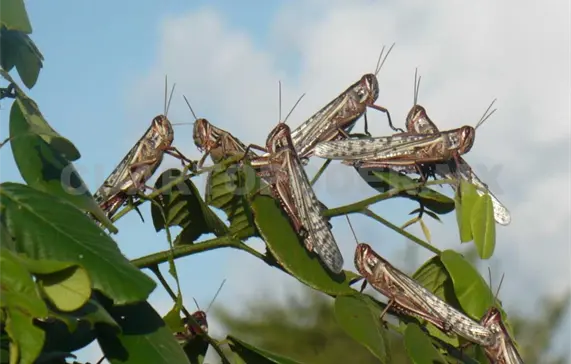 En el caso de Chiapas se tienen el registro en años pasados, de la presencia de la langosta en cultivos de la zona baja de Tapachula, como ocurriera en el 2009, donde este insecto destruyó plantas completas de sorgo y maíz.