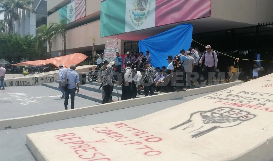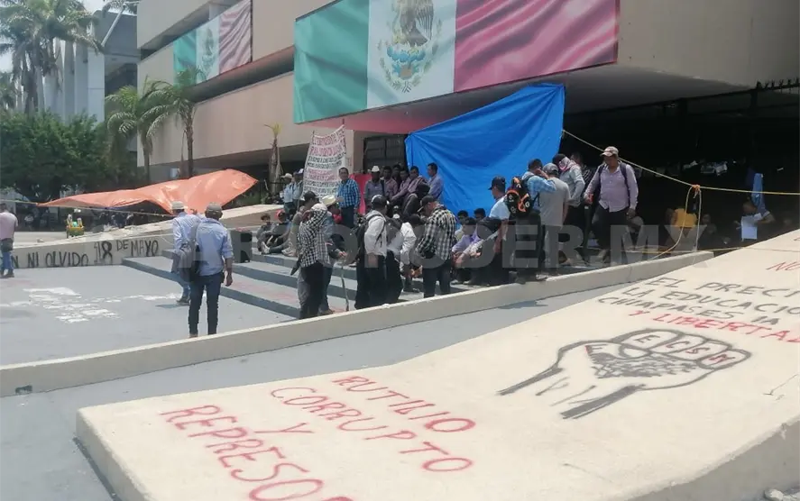 Los habitantes de la comunidad La Pimienta, acudieron a bordo de camionetas desde la mañana del lunes y se apostaron en la esquina de la avenida Central y 2ª Sur, en tanto que una comitiva ingresó al palacio de Gobierno para exponer sus demandas.