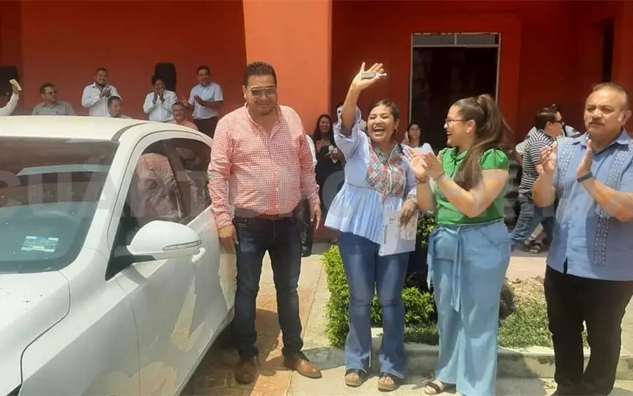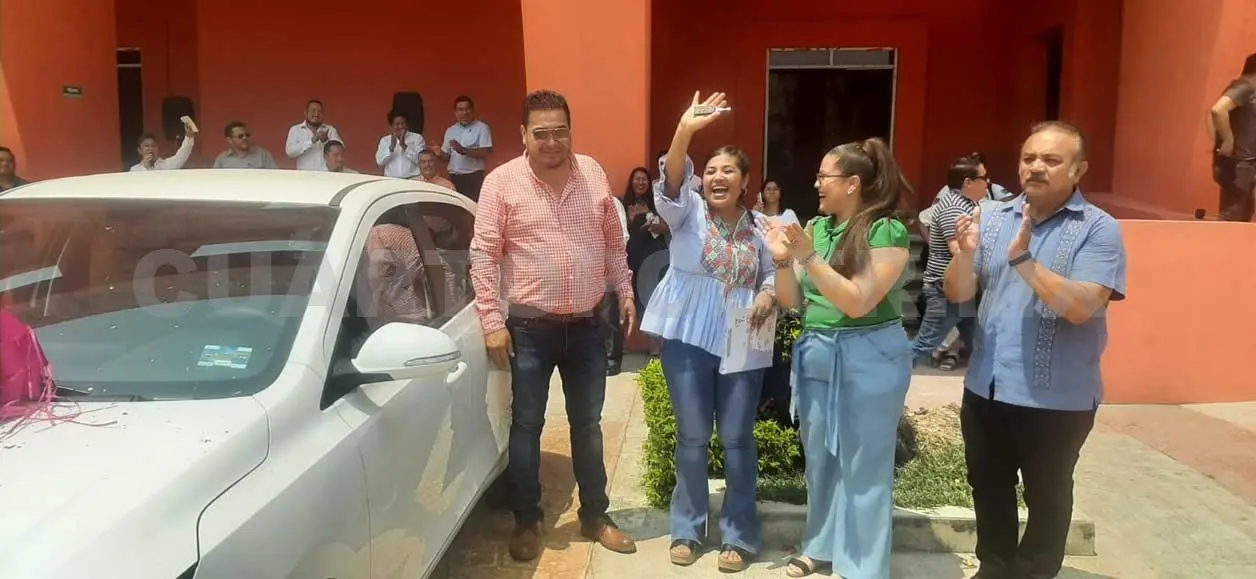 La maestra Madeleyne Sánchez Valencia, del nivel preescolar y de la zona Valle-Frailesca, se llevó un Aveo 2024; Yari Deisy Lara López ganó un modelo similar pero en color azul, y Alejandra Isabel Velázquez Reyes tuvo como premio un Mirage blanco 2023.