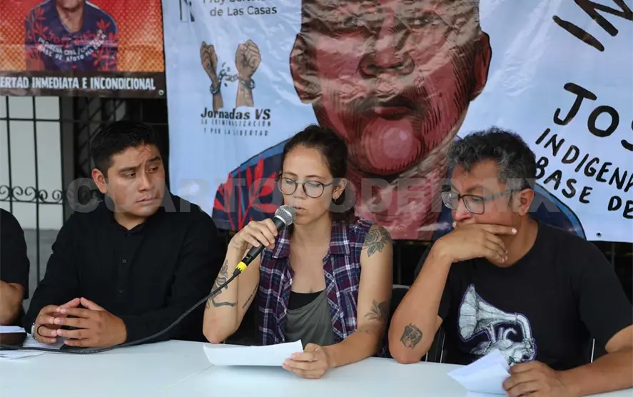 En conferencia de prensa, en las afueras del Palacio de Gobierno del estado de Chiapas, representantes del Frayba señalaron graves violaciones a los derechos humanos de Díaz Gómez, al tiempo que exigieron su liberación inmediata.