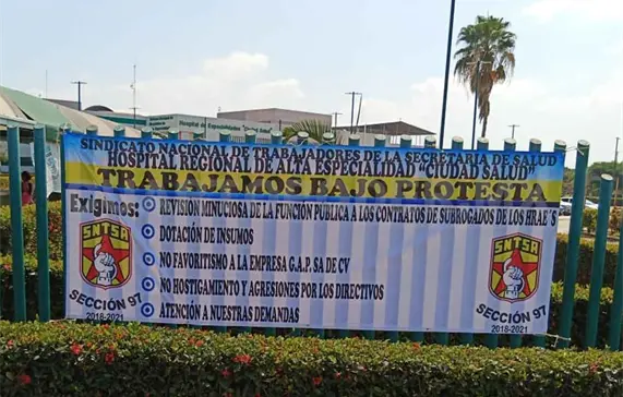 Ante esa situación, dijo que el personal de ese centro hospitalario se encuentra trabajando bajo protesta e iniciaron pegando documentos al interior del hospital, pero al no ser escuchados ni atendidos pusieron lonas en el exterior del mismo, “para que la población y la opinión pública se entere de los problemas que se presentan en Ciudad Salud”.