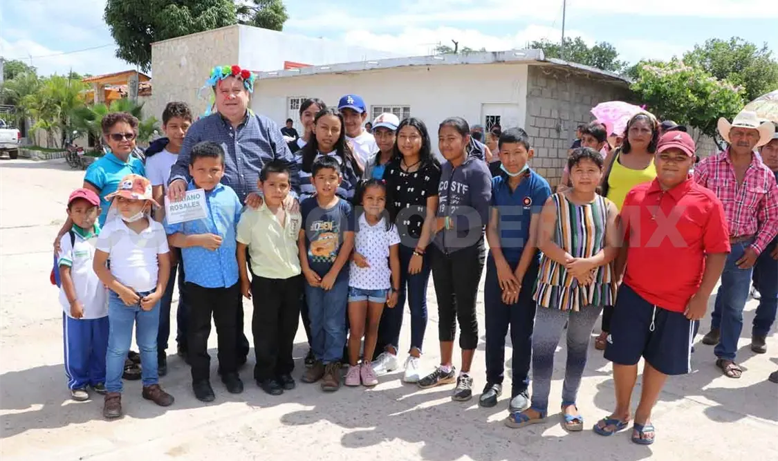 Durante el acto de entrega se hizo acompañar por el agente municipal, Óscar Gutiérrez Toledo; del comisariado ejidal, Abraham Morales Mendoza; de Aníbal Camacho Esquinca y vecinos de la localidad.