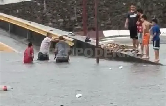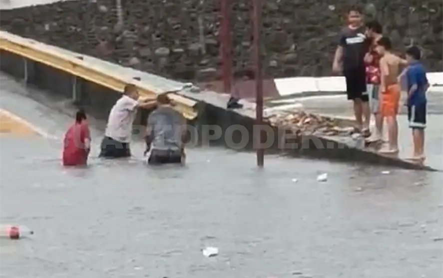 Asimismo, en la 14.ª Norte y Central Poniente, el río Coatancito subió por arriba del puente.
