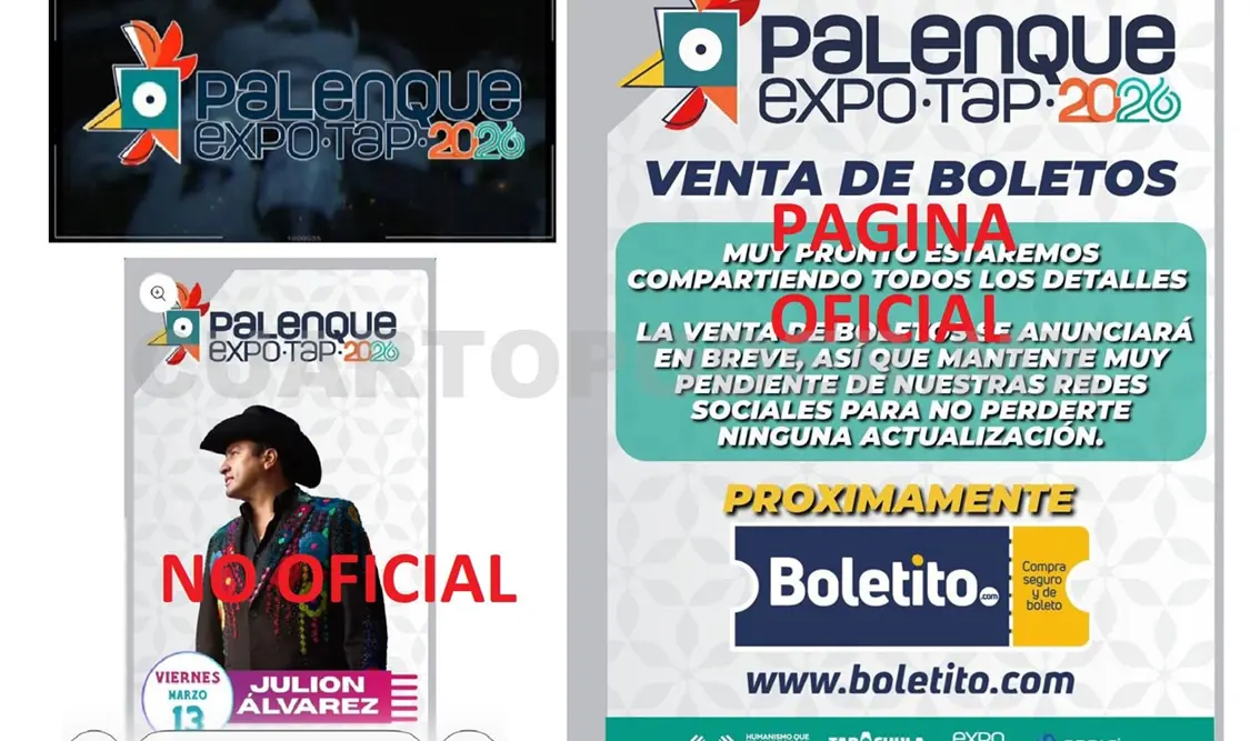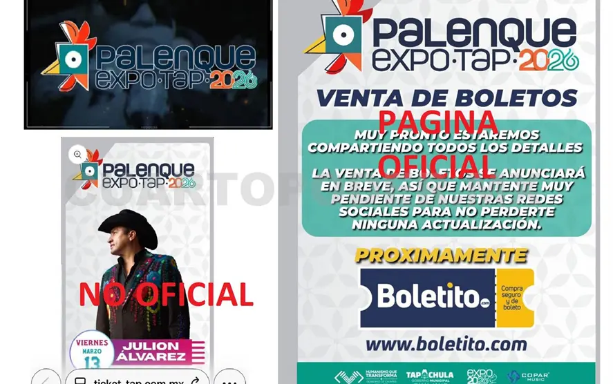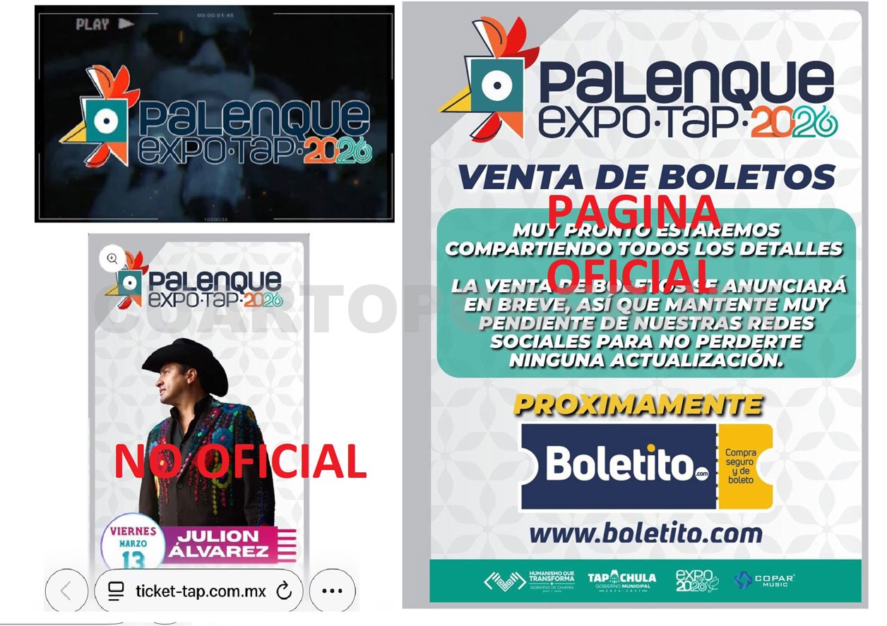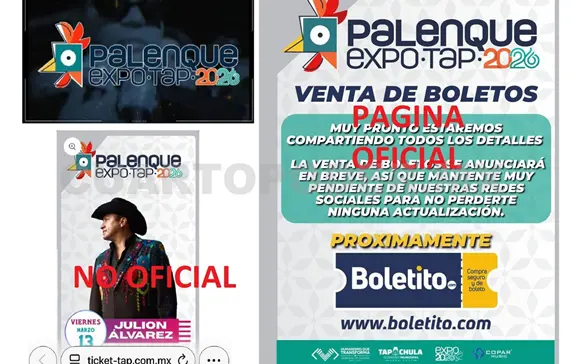 Al iniciarse la venta de boletos este miércoles 21 de enero para los conciertos en el Palenque de Gallos de la Expo Feria Tapachula 2026 que se realizará del 5 al 15 de marzo, directivos acusaron que extrañamente en redes sociales apareció una página no oficial llamada ticket-tap.com.mx que oferta las entradas. Autoridades reiteran que la página no es oficial y alertan de posibles fraudes.