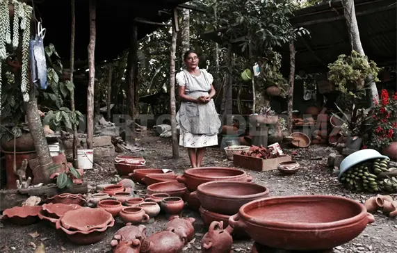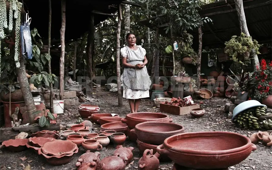 De fondo la marimba, una interpretación que ameniza el espacio y nos recuerda que las tradiciones forjan el carácter identitario de nuestro pueblo; la maestra descansa en su banco, mientras traduce sus emociones por medio de obras señeras, piezas únicas en la que destacan vasijas, sahumerios, tazas, ollas, vasos, pichanas y muchas más.