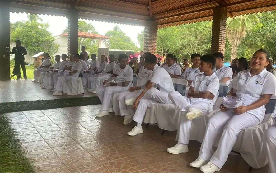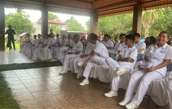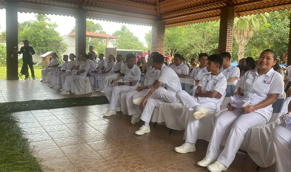Alumnas y alumnos que cursan el quinto semestre de la especialidad de Enfermería General, en el Colegio de Estudios Científicos y Tecnológicos y Telebachillerato Comunitario de Chiapas (Cecyte Chiapas), Plantel 31, ubicado en el municipio de La Independencia, participaron en la ceremonia de Imposición de Cofias e Insignias.