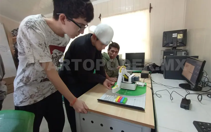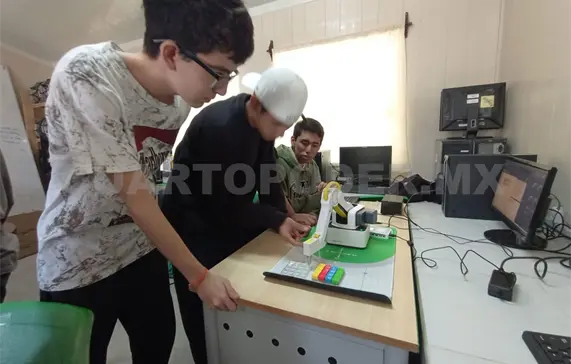 Estudiantes de nuevo ingreso al Club de Robótica del Colegio de Estudios Científicos y Tecnológicos y Telebachillerato Comunitario de Chiapas (Cecyte-TBC Chiapas), plantel número 40 Las Águilas, ubicado en Tuxtla Gutiérrez, participaron en la capacitación sobre instalación y operación de brazos robóticos de la línea Dobot, los cuales se utilizarán en la categoría “Robótica Colaborativa” en torneos de robótica a nivel nacional.