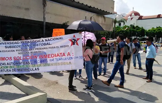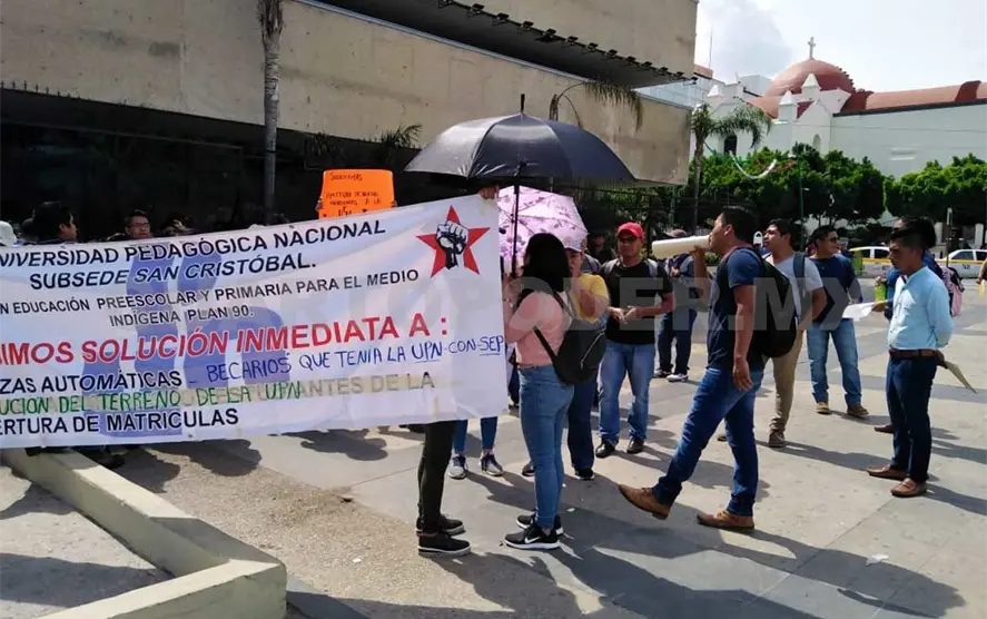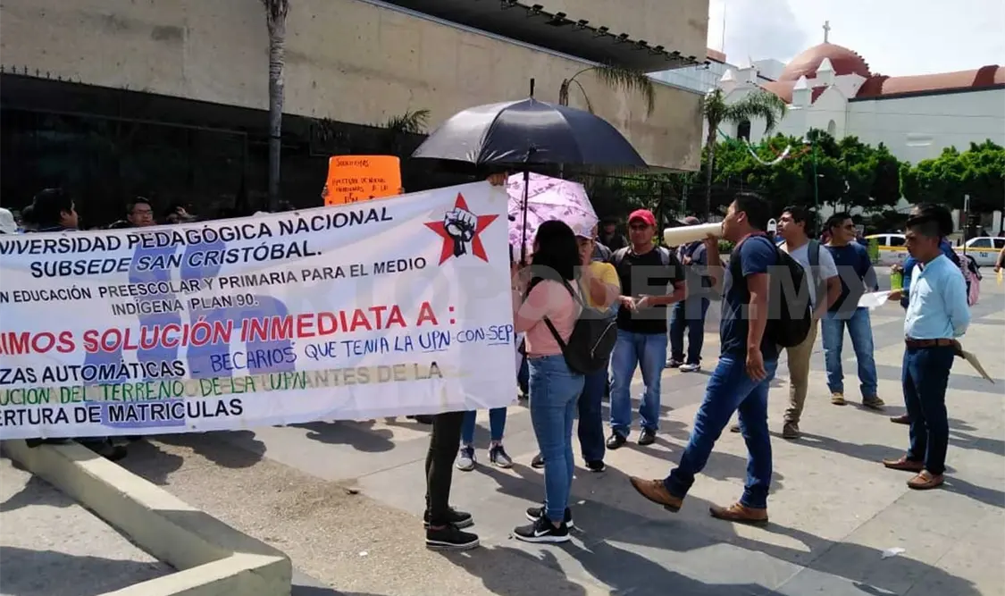 Alumnos de la Universidad Pedagógica Nacional de diferentes semestres arribaron a la capital chiapaneca para exigir al Gobierno del estado el otorgamiento de plazas automáticas y la ampliación de matrículas en la institución.