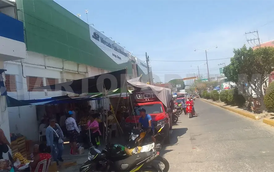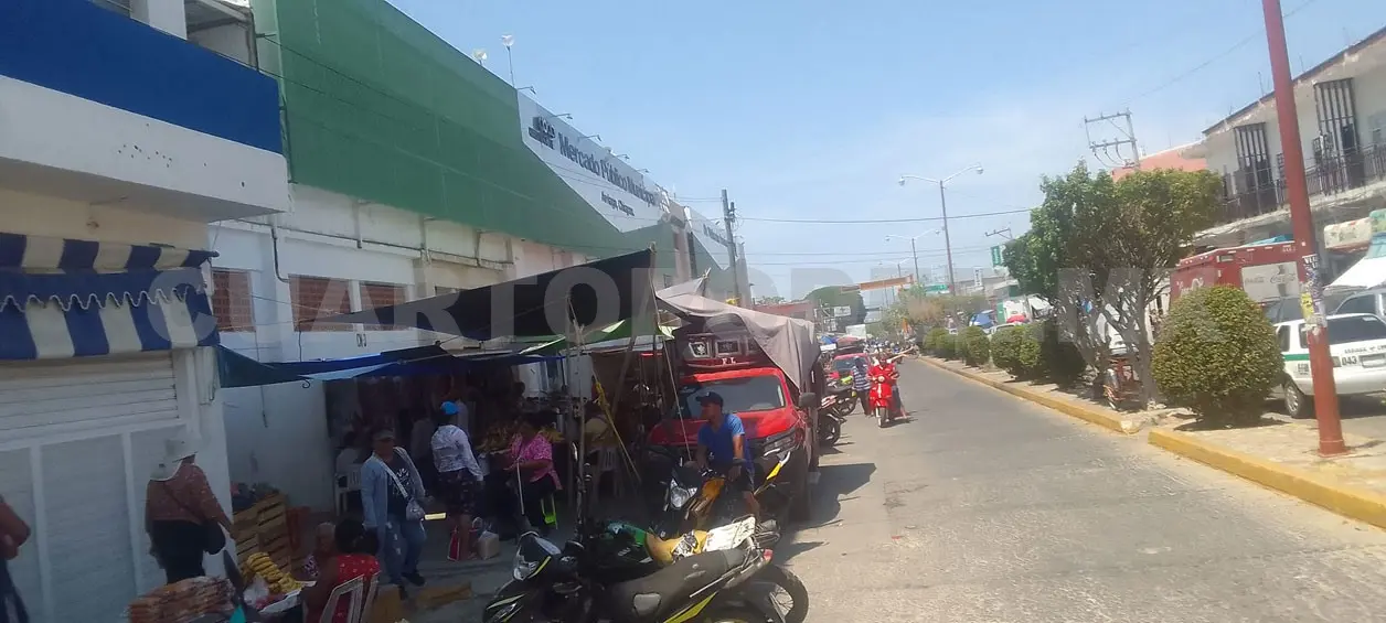 Vendedores ambulantes se establecieron en la banqueta del mercado público Belisario Domínguez de la ciudad de Arriaga, así lo informaron los comerciantes que venden en el interior del citado centro de abastos.