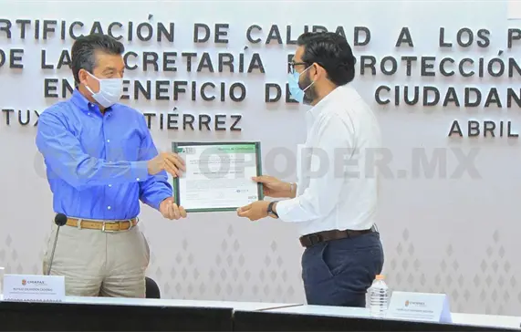 La Consultoría Villafuerte y la empresa American Trust Register en Chiapas entregó los sellos de recertificación ISO 9001-2015 a los 20 procesos que se mantienen en el rubro de la protección civil, al tiempo de subrayar la importancia de mejorar continuamente la operatividad de las instituciones y lograr la eficacia y eficiencia, de manera permanente.
